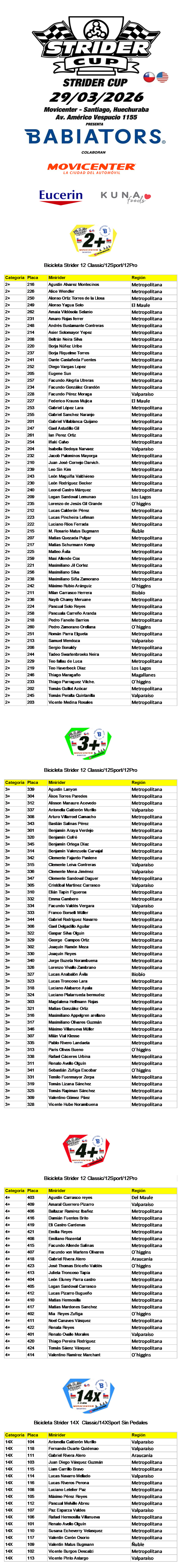 Para participar, tu hijo debe estar incluido en este registro. Si no aparece y realizaste tu inscripción, escríbenos a info@striderbikes.cl o al Whatsapp.